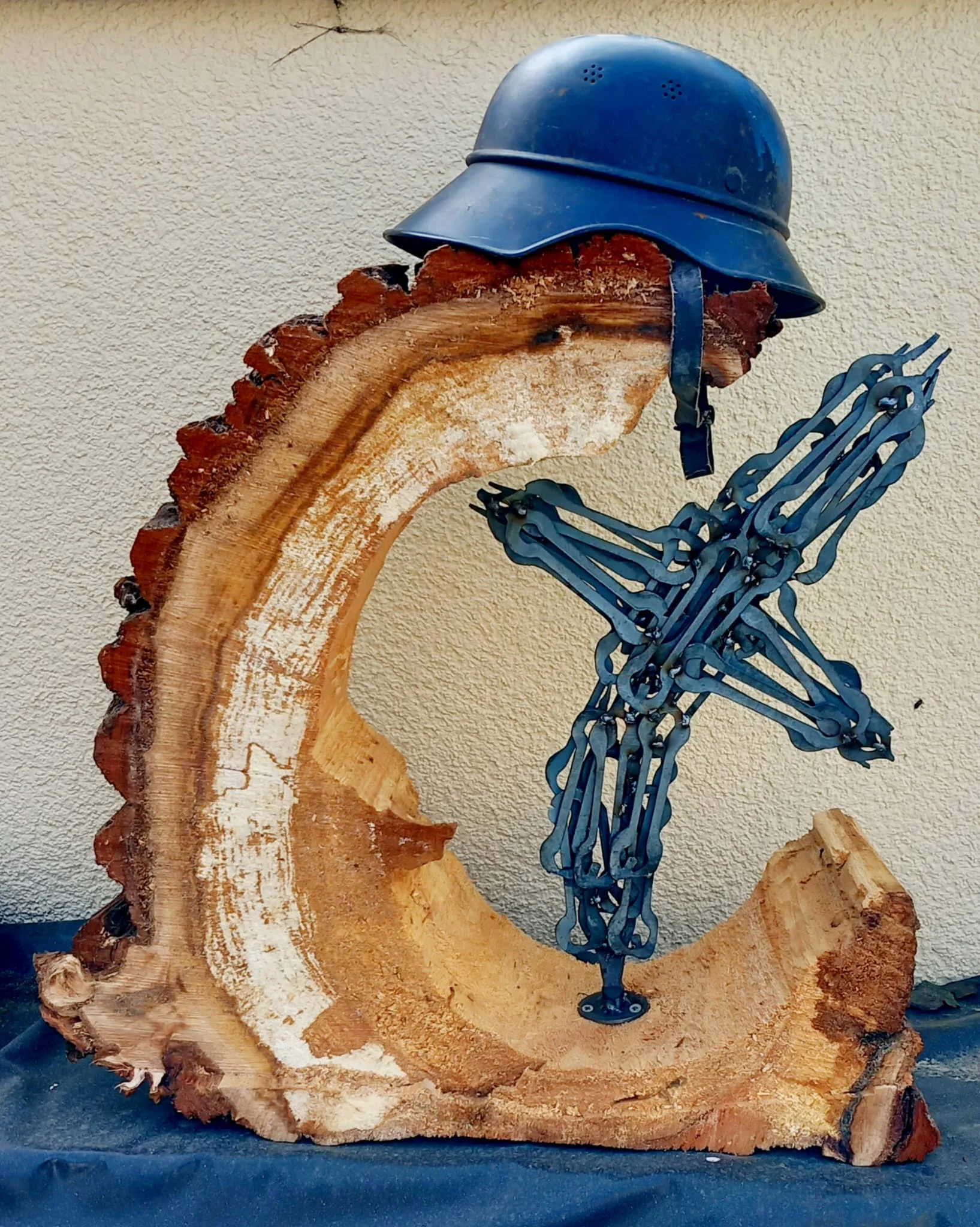 Eine Skulptur von dem Künstler Hans-Werner Gassmann, 2024 angesichts des Aufkommens rechtsradikaler Strömungen gestaltet, wohnhaft in Niederbobritzsch (Sachsen)